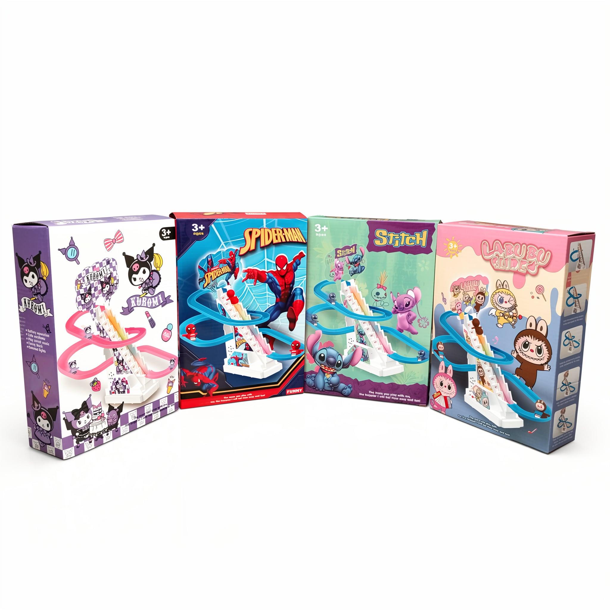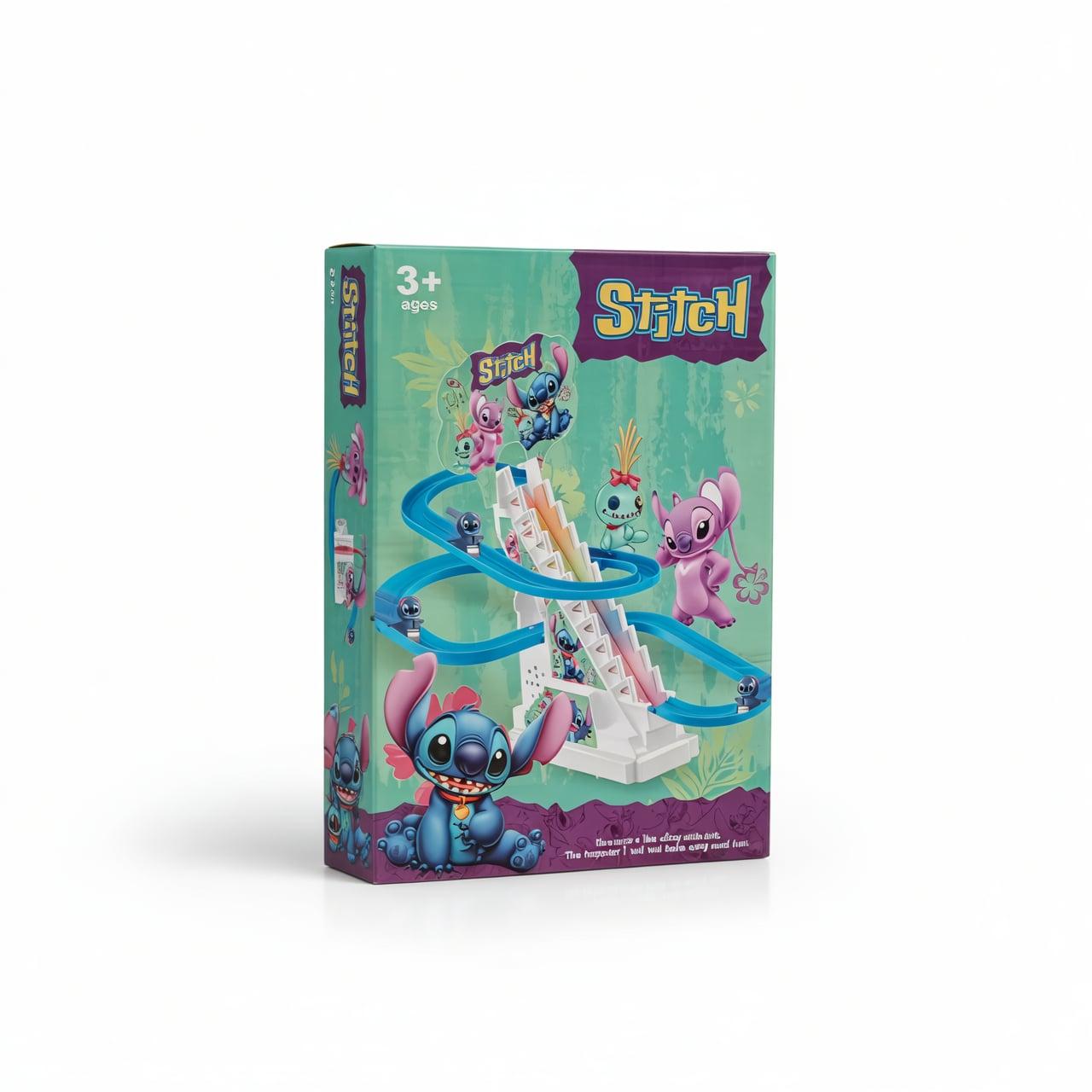 Le Circuit Escalier Stitch est un jouet d’activité amusant pour enfants. Il comprend trois petits pingouins, un escalier mécanique et trois pistes de glisse. Lorsque le jouet est assemblé et activé, les pingouins montent un à un en haut de l’escalier puis glissent jusqu’au point de départ pour un nouveau tour. Un mécanisme interne agit comme un escalator, propulsant les personnages vers le haut et les ramenant automatiquement après la glissade. Le jouet intègre une musique entraînante et des lumières attrayantes qui captivent l’attention des enfants.