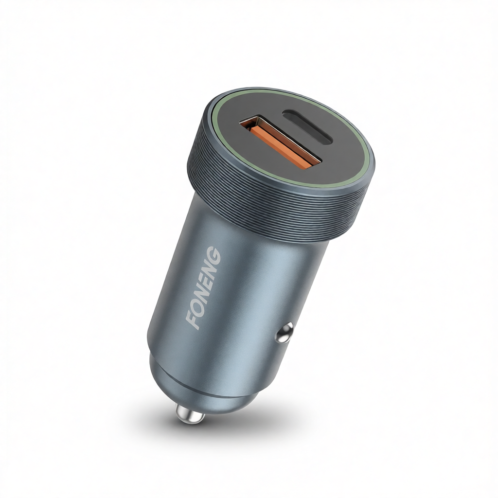 Le Metal Car Charger Foneng est un chargeur voiture compact et robuste conçu pour offrir une charge rapide et sécurisée pendant vos déplacements. Grâce à ses ports USB et/ou Type-C, il permet de recharger efficacement smartphones et autres appareils. Son design en métal assure durabilité et meilleure dissipation de chaleur.