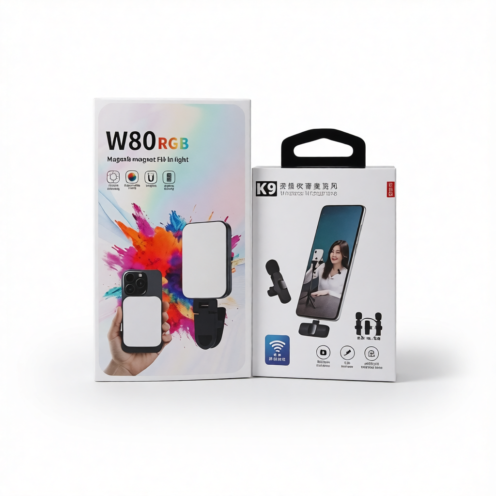 Le Pack Creator W80 – RGB Magnetic Selfie Light + K9 Microphone Sans Fil est conçu pour les créateurs de contenu, vloggers et utilisateurs de réseaux sociaux. Il combine une lampe selfie RGB magnétique W80 pour un éclairage coloré et professionnel, avec un microphone sans fil K9 pour un son clair et net. Léger, facile à utiliser et compatible avec la majorité des smartphones, ce pack améliore la qualité de vos vidéos, photos, lives et enregistrements audio.
