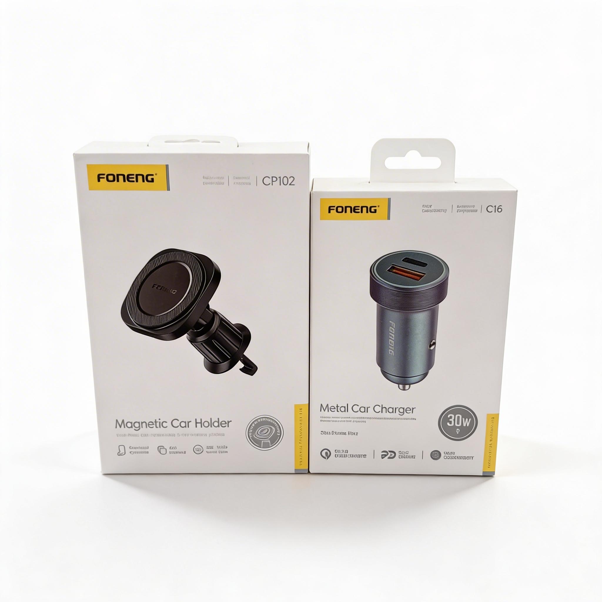 Le Pack Foneng Metal Car Charger + Magnetic Car Holder est la solution idéale pour recharger et maintenir votre smartphone en toute sécurité pendant vos trajets. Le chargeur voiture en métal assure une recharge rapide et fiable, tandis que le support magnétique garantit un maintien stable et pratique. Compact et élégant, ce pack est parfait pour une utilisation quotidienne en voiture.