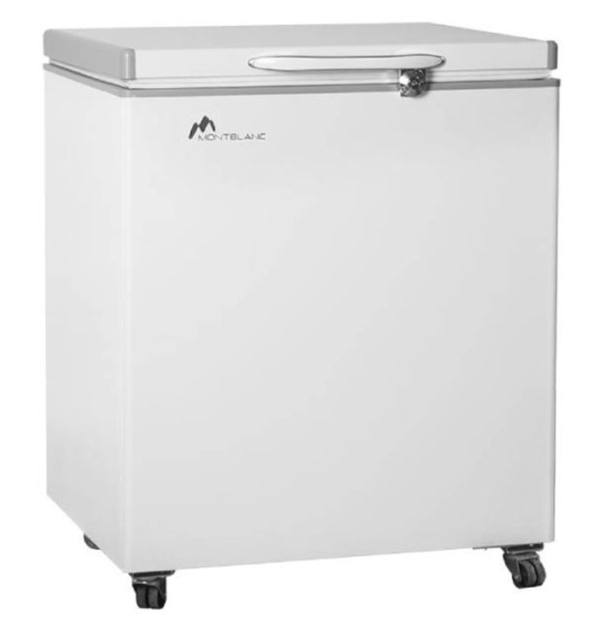 Ce congélateur horizontal MontBlanc ECF200 en finition blanche offre une capacité de 200 litres, idéale pour le stockage alimentaire à domicile. Il fonctionne avec un système de froid statique (DeFrost), dispose d’un thermostat réglable et assure une autonomie estimée d’environ 15 heures en cas de coupure de courant. Avec ses dimensions de 94 × 63 × 72 cm, il s’intègre facilement dans un garage, une buanderie ou un local de stockage. Il est équipé de roues pour un déplacement facile.
